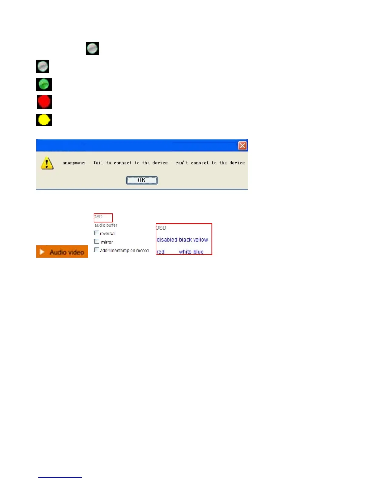 OSD: Means “On-Screen Display”, click “Audio video” > “OSD”, set display date and time on the video.