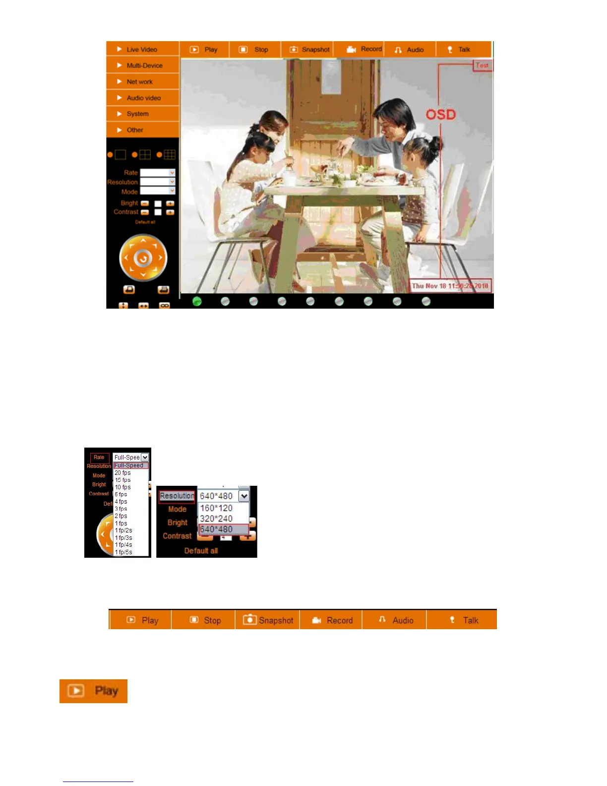 live video, you can do the operation on the right side, such as play, stop, snapshot etc.