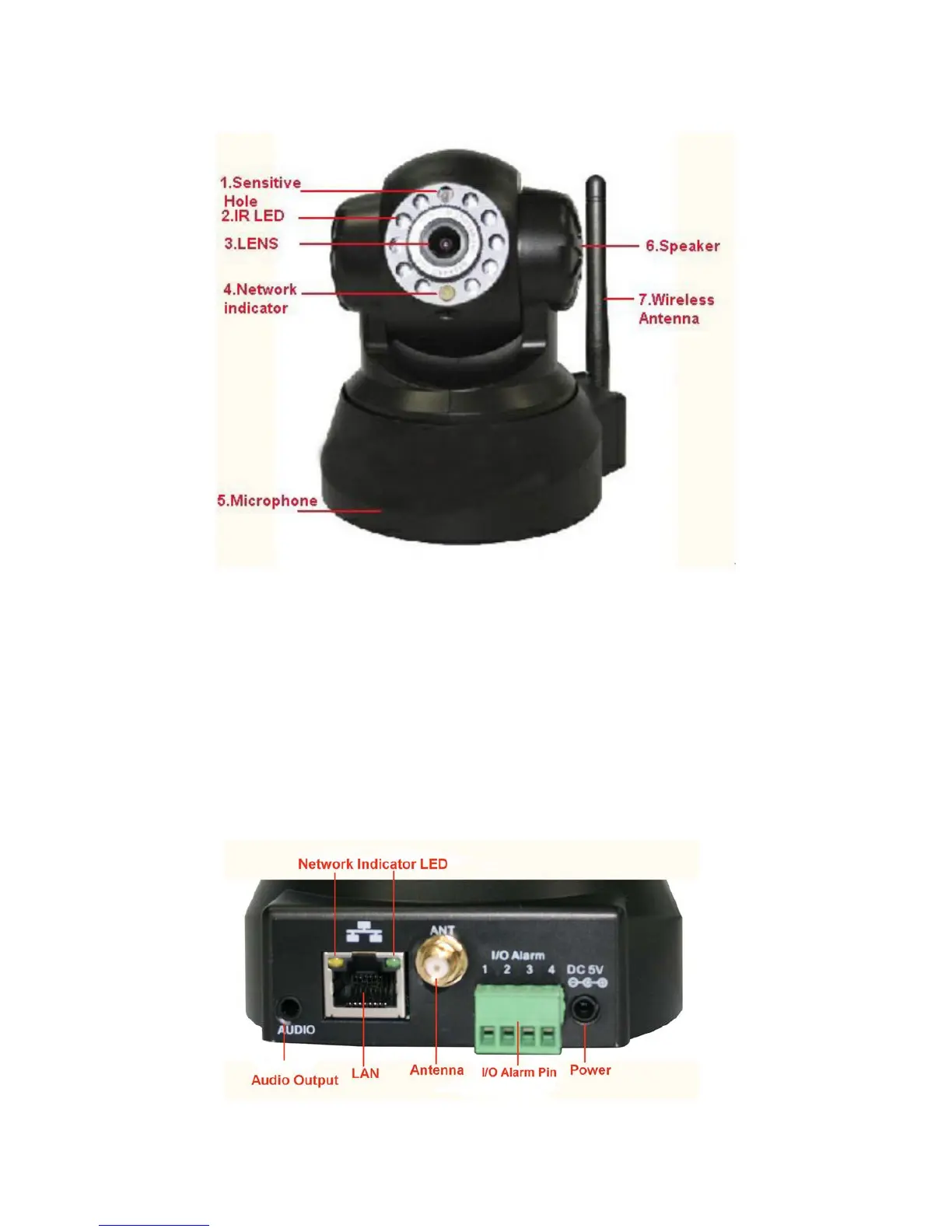 4 Network Indicator LED: If there is network activity, the LED will blink