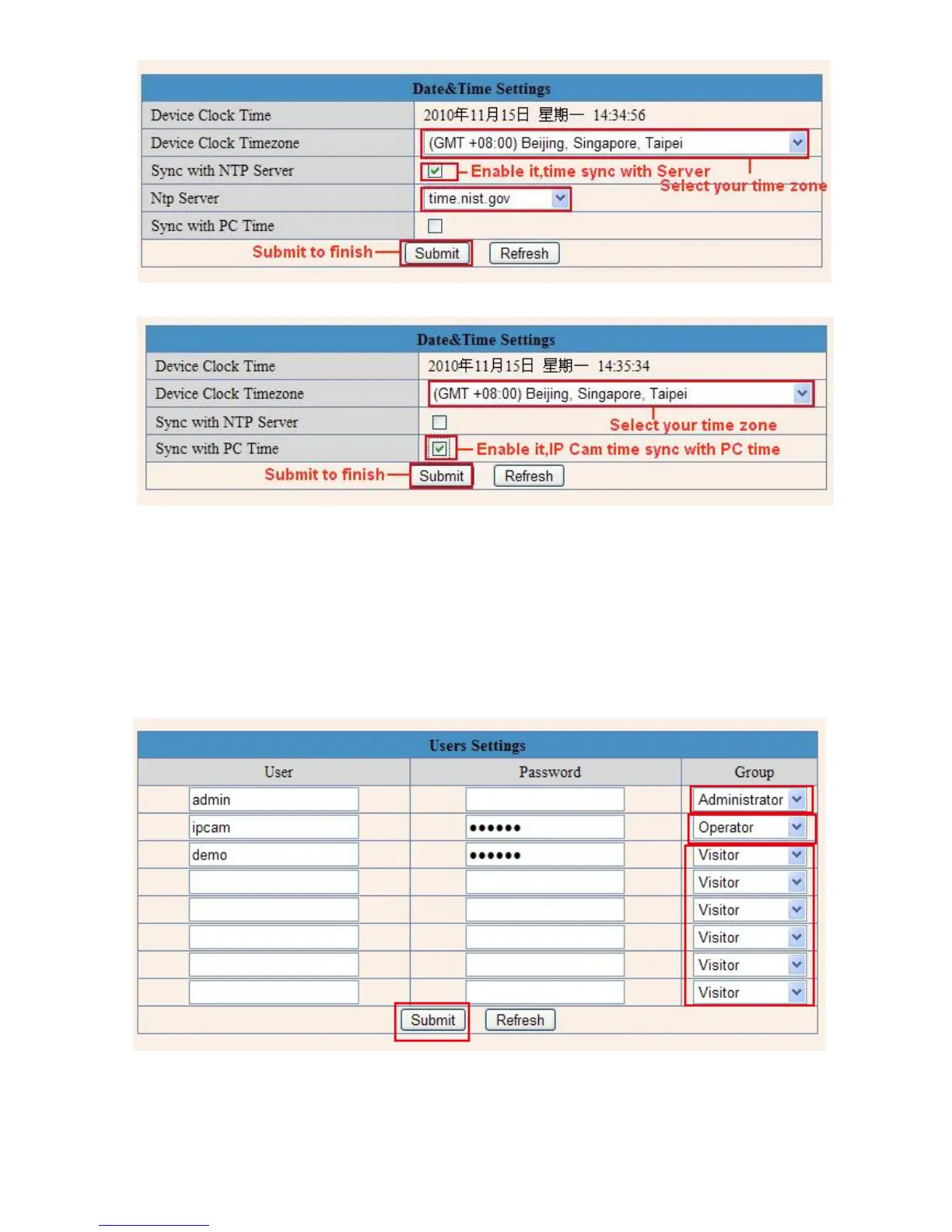 Administrator: You can setup the advanced configurations of the IP Camera. (Details3.1-3.22).