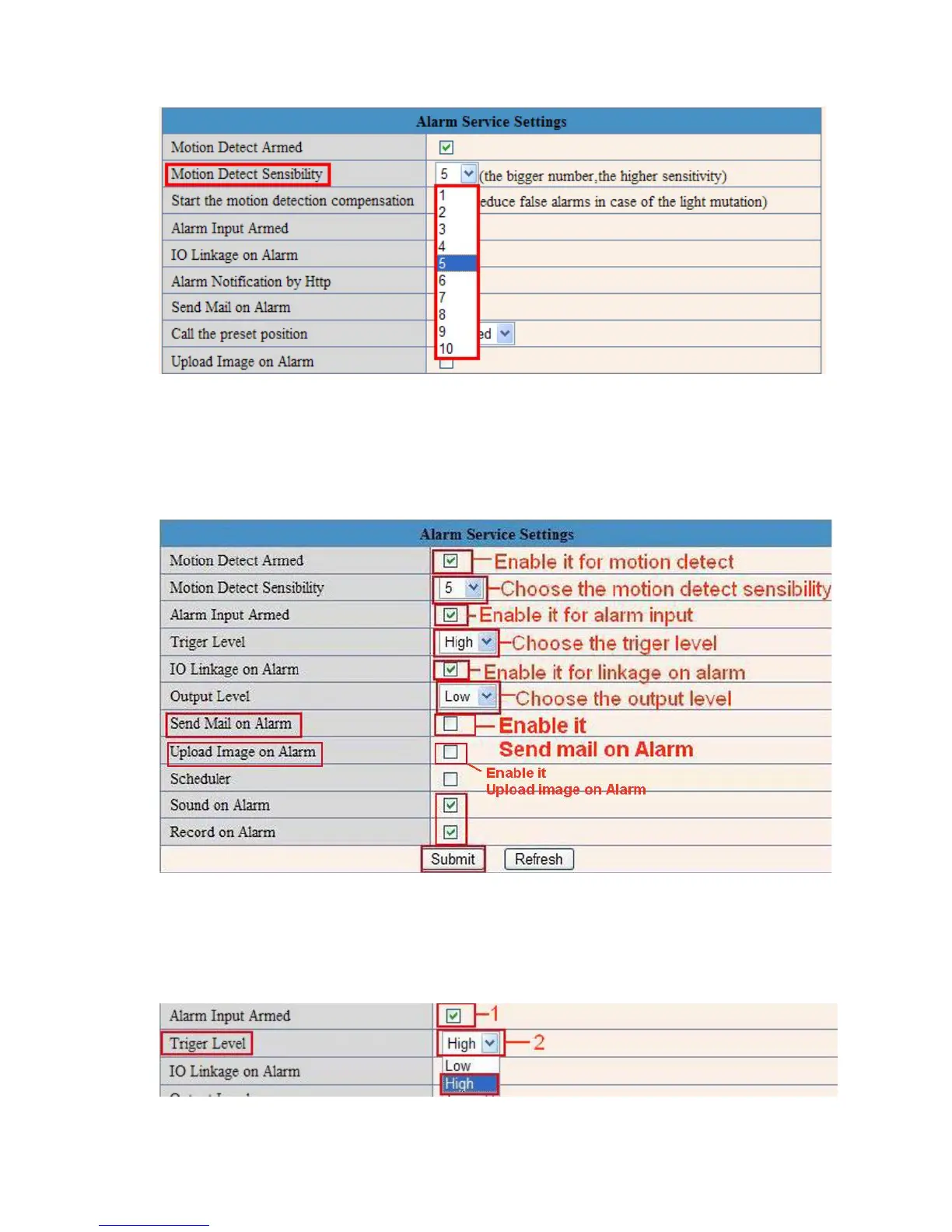 You can choose level 1-10; level 10 means the most sensitive, 1 means the least sensitive.