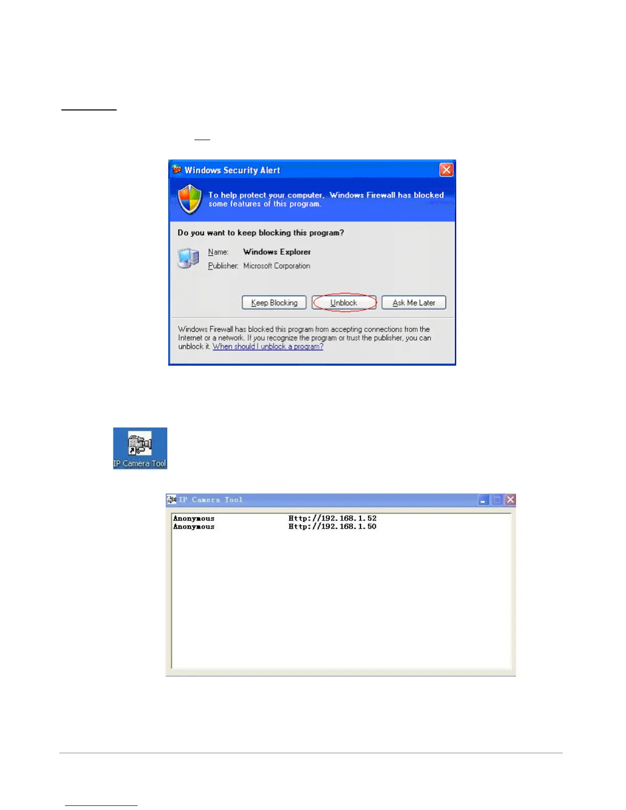 WARNING : On the first run of the program “IP Camera Tool” you might get a Windows Security Alert