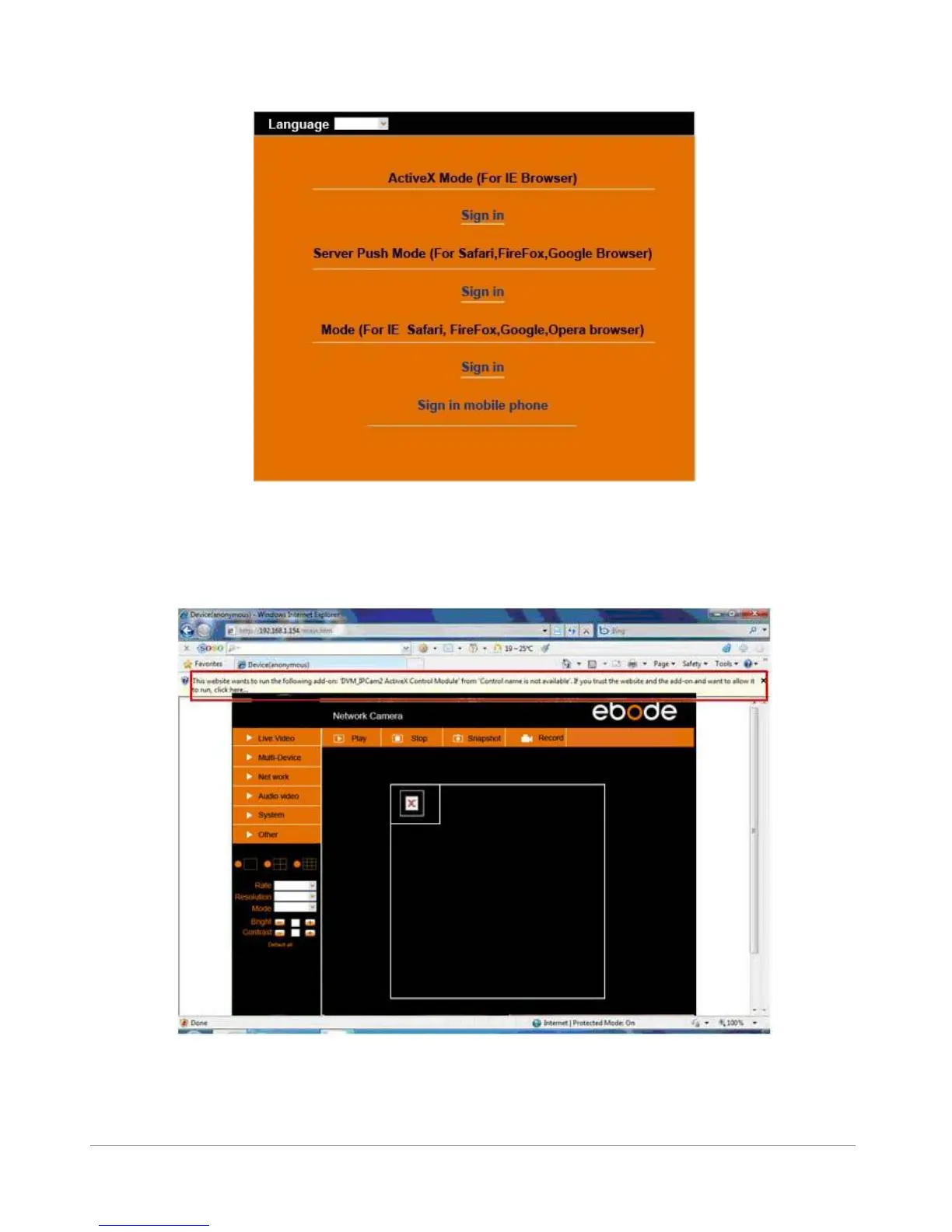 The first time you login to the camera, you might get an ActiveX prompt as in the picture above, please click
