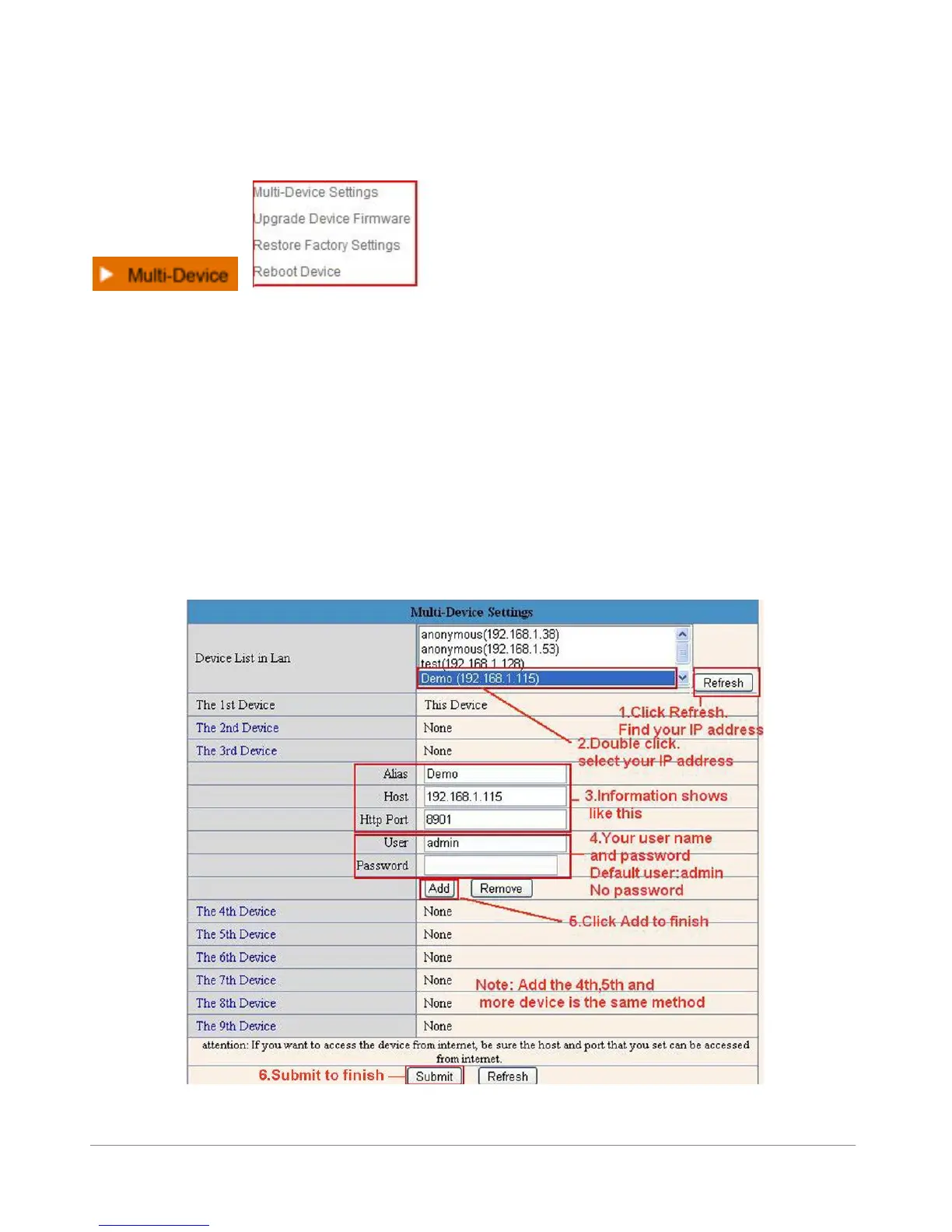 Click The 2nd Device and click the item in the Device List in Lan, it will fill the Alias, Host, Http Port