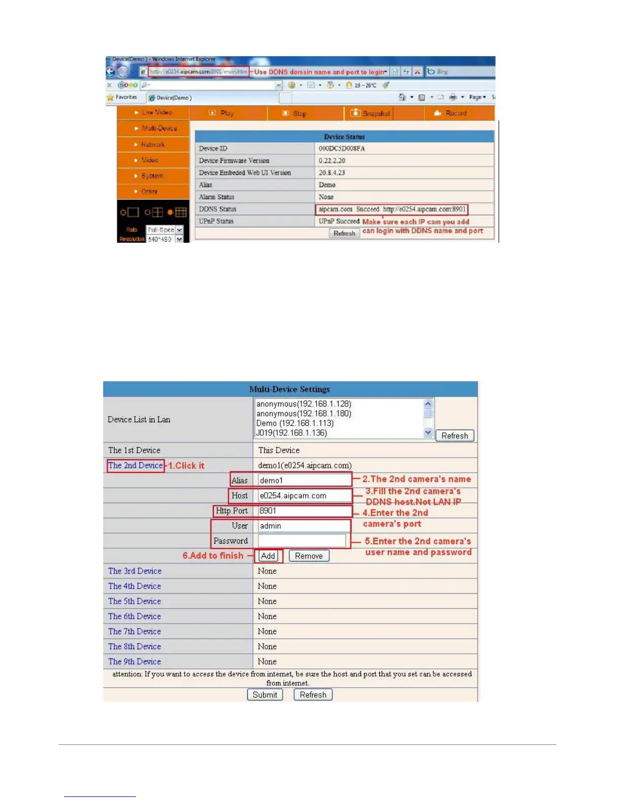 Click Multi-Device, select Multi-Device Settings. Choose the 2nd Device; fill in the 2nd camera’s