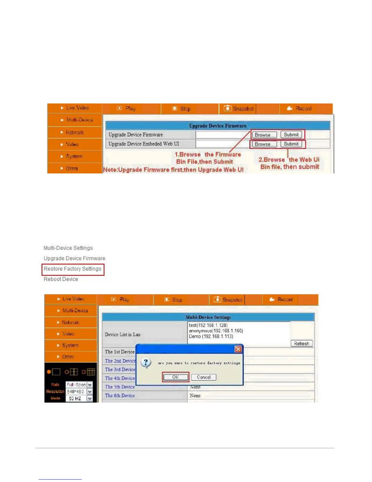 Please don’t try upgrade freely, because wrong operation or incorrect upgrade bin file will damage the