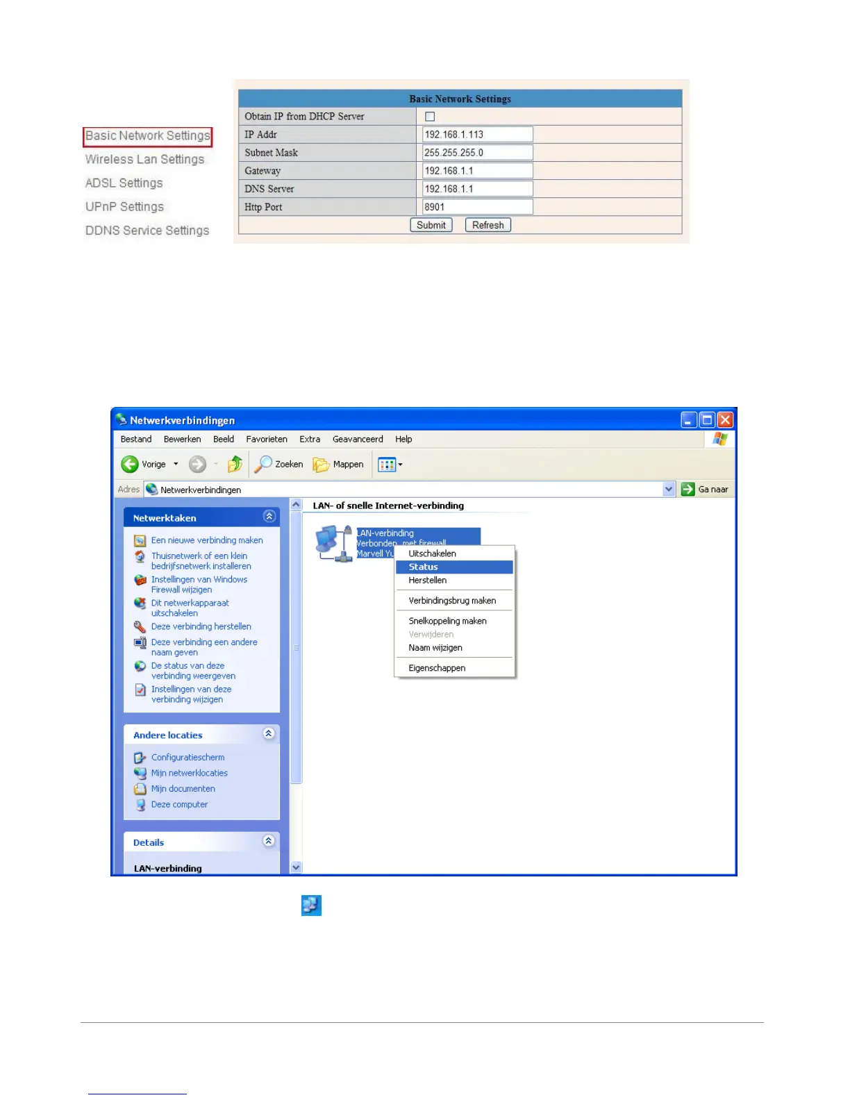 1. Control PanelNetwork ConnectionsLocal Area Connections Support Details