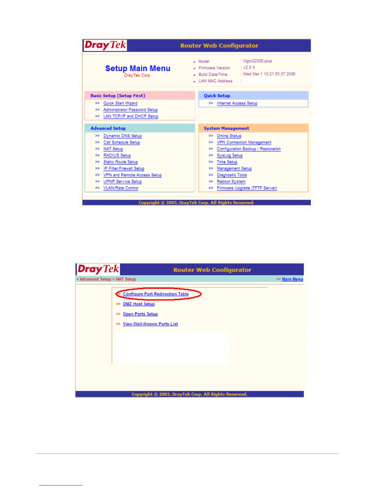 4. Select NAT Setup. Please note that for each brand this can have a different name for NAT setup.