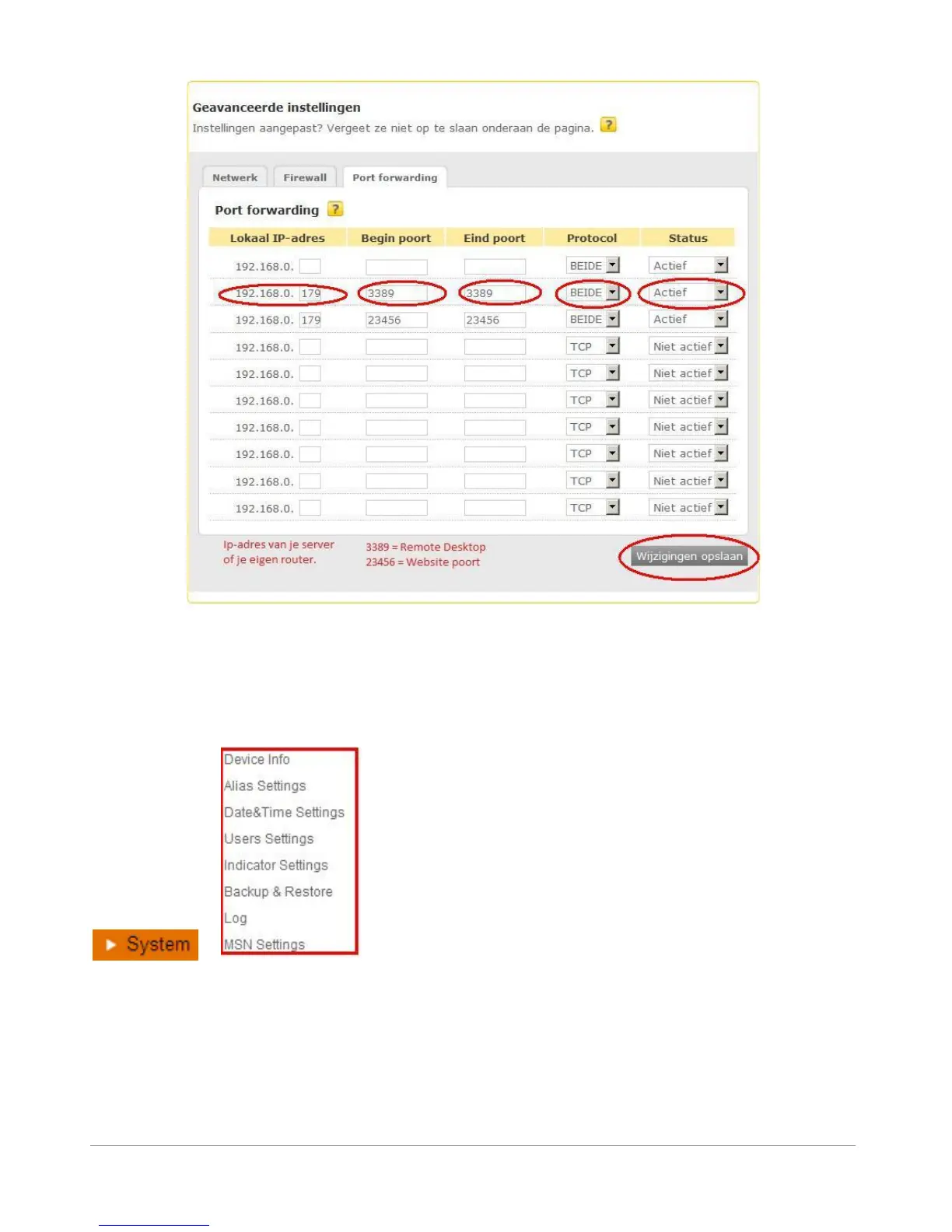 Alarm Status, DDNS Status, UPnP Status and MSN status..