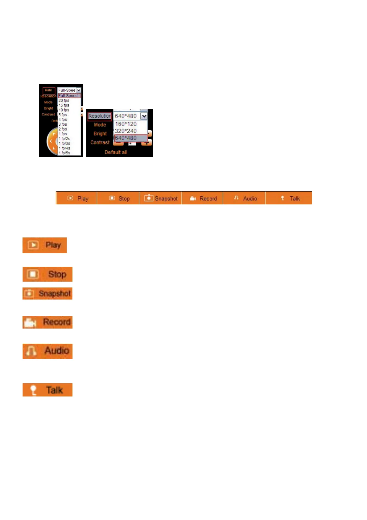 video, you can do the operation on the right side, such as play, stop, snapshot etc.