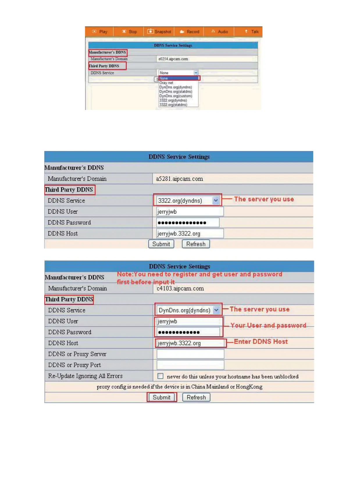 won’t work, if you use the third party DDNS, the manufacturer’s one won’t work.