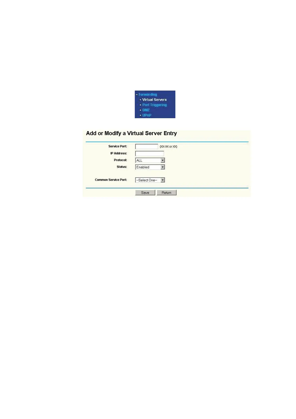 2. Choose “Forwarding”, select “Virtual Servers”