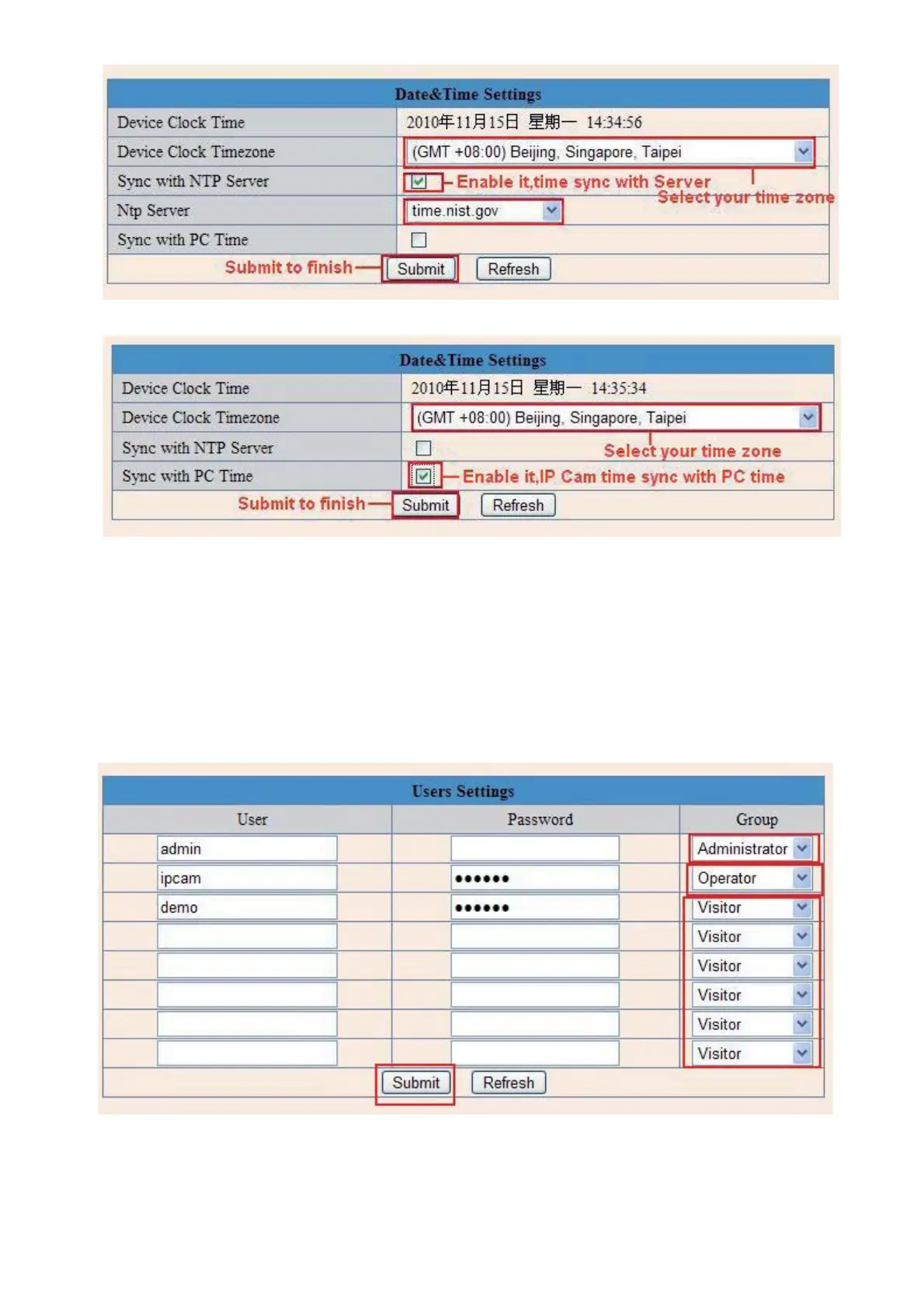 Eight accounts are acceptable for this system. Here you can set the user names and password as