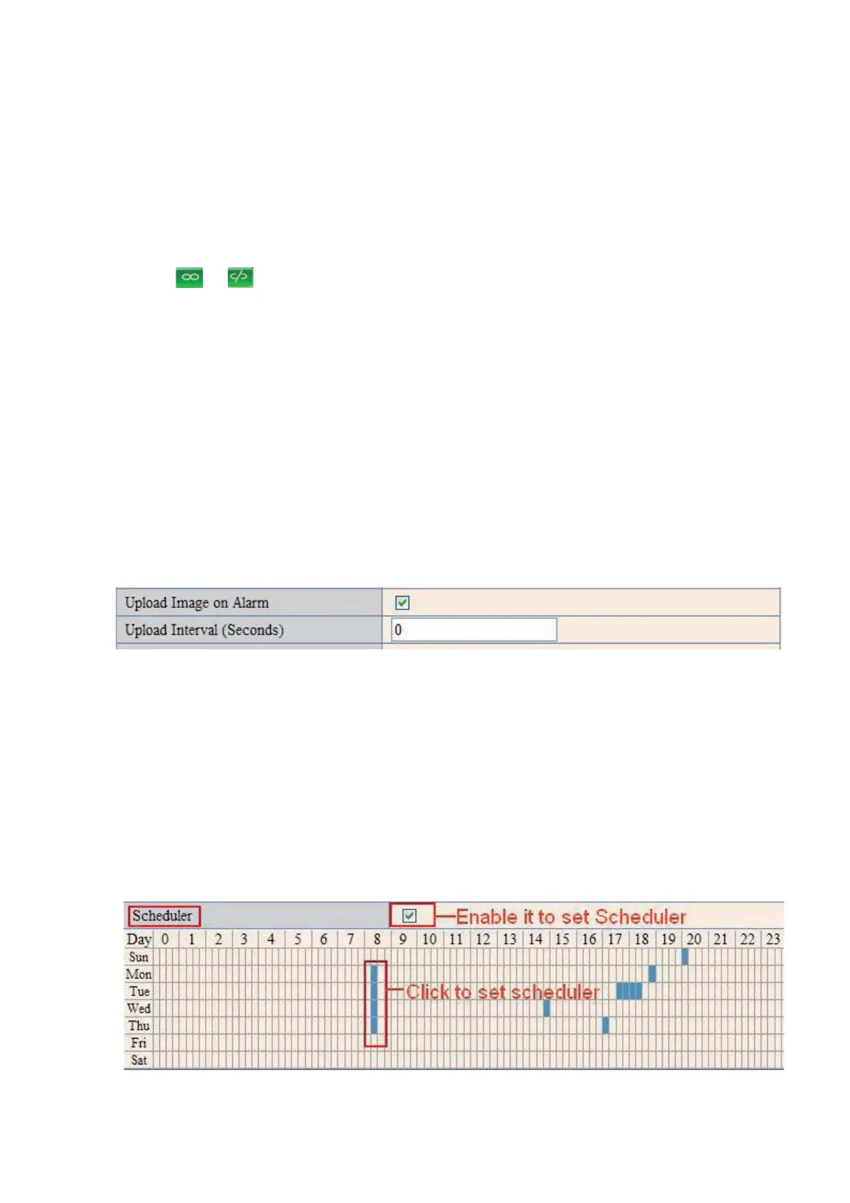 Here you can set the camera alarm during the time you set. Choose Scheduler and set the date & time