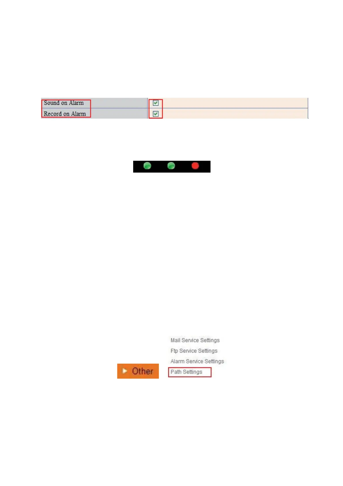 Here you can set record path and alarm record path for the camera.