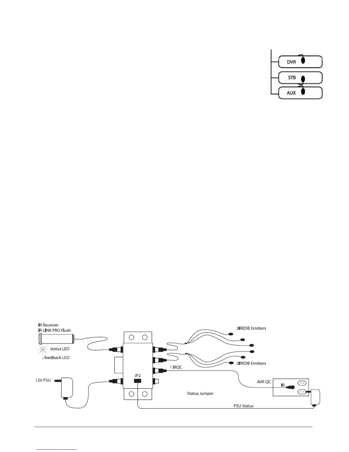 4. Steek de rode ministekker van de IR Ontvanger in de rode "IR RCVR" ingang op het IRHUB4