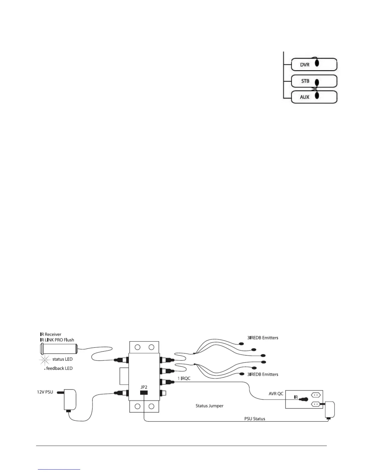 4. Collegare la mini-spina rossa del Ricevitore IR IRLPRO Mini nella presa jack rossa "IR RCVR" sul