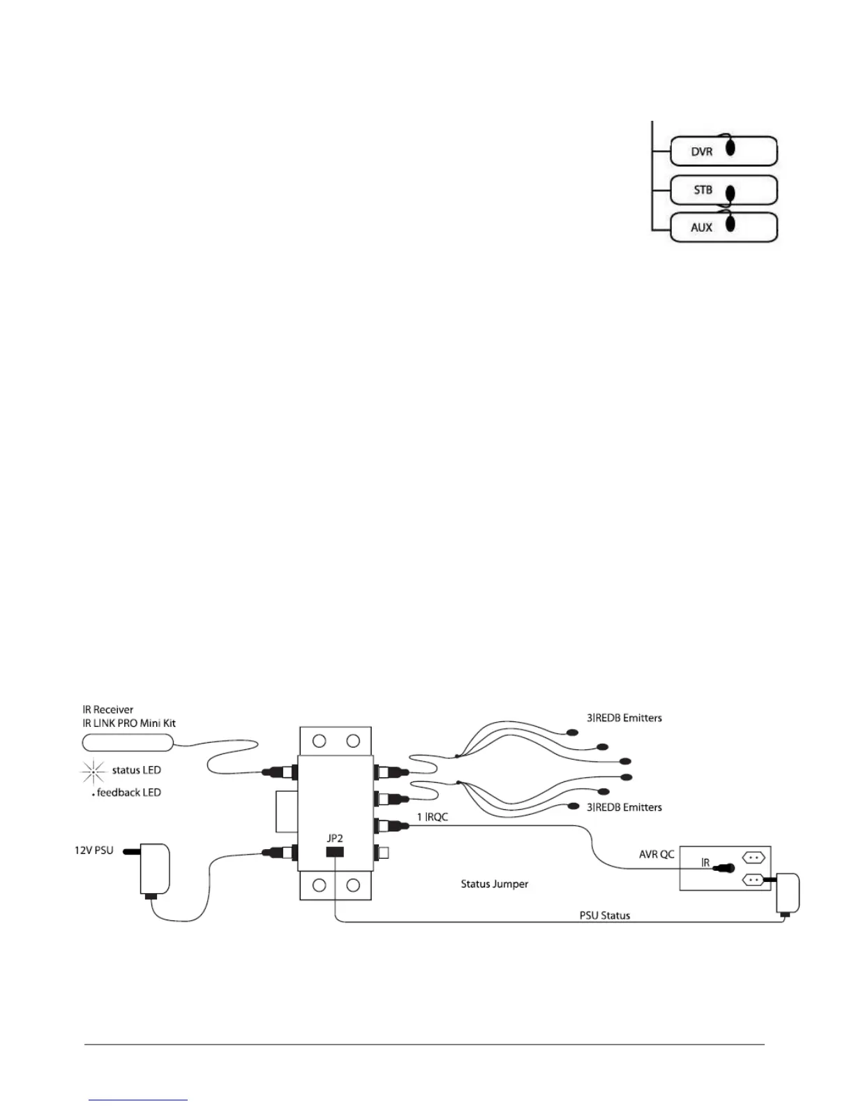 Sie können ein Spannungsstatussignal an den IRLPRO Mini IR-Receiver durch Anschluss einer