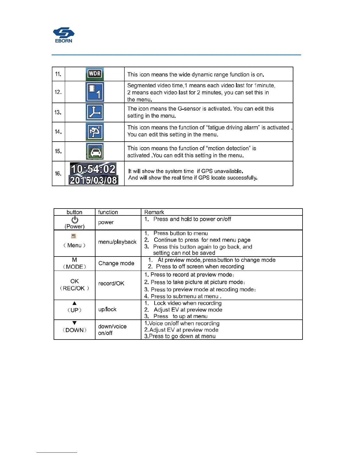 Eborn G-01 - Button Functions; Button Operations