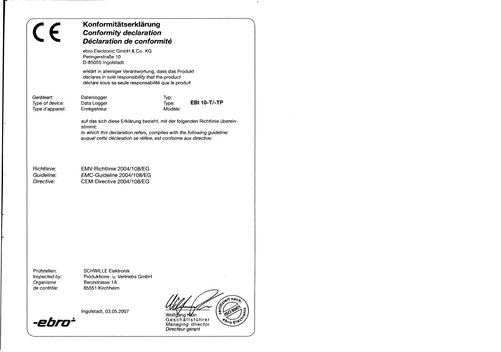 Ebro EBI IF-100 - Konformitatserklarung