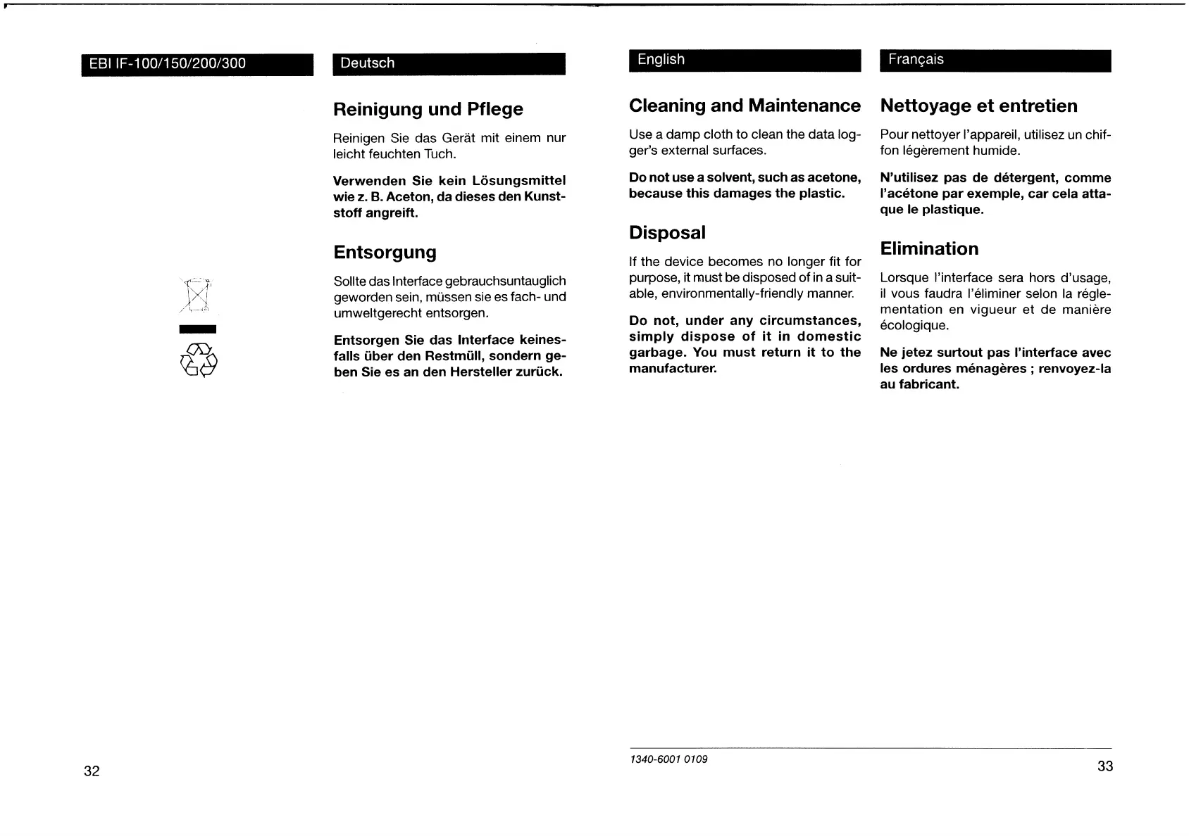 Ebro EBI IF-100 - Nettoyage et Entretien