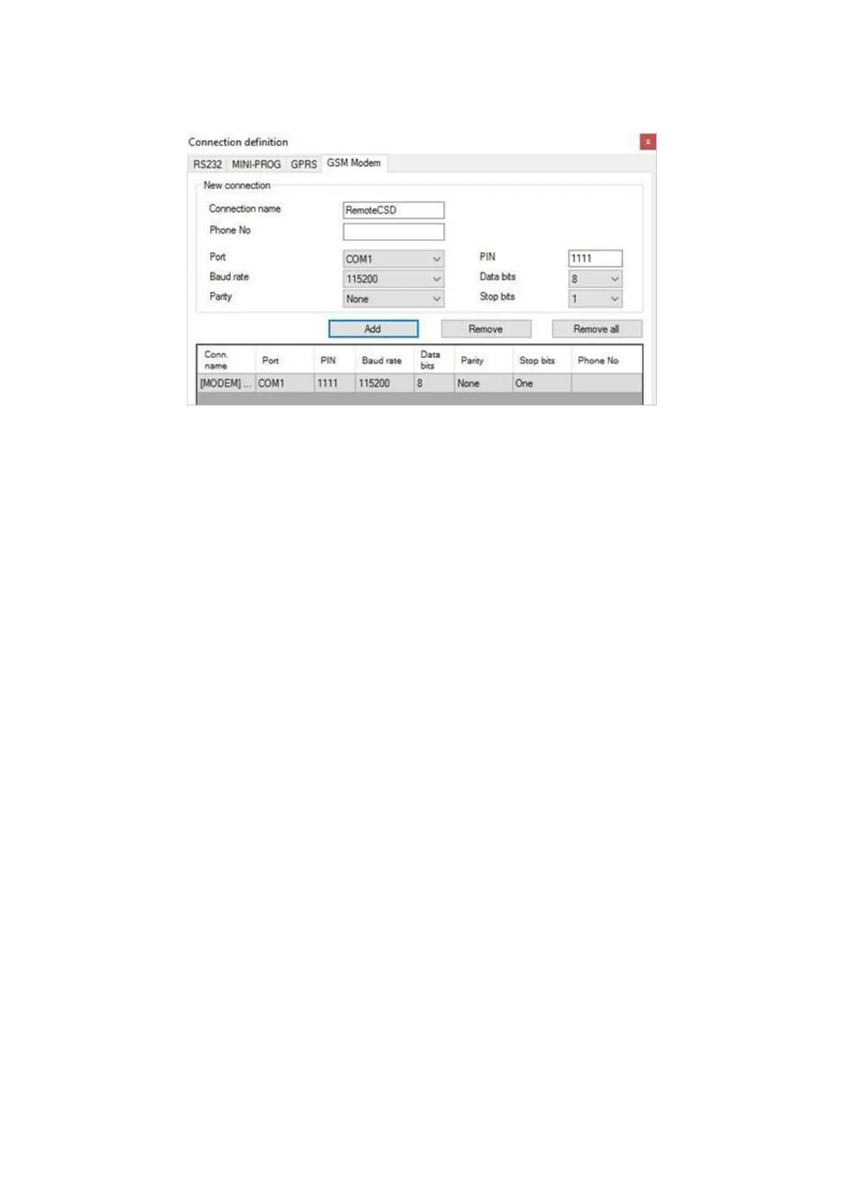 Remote configuration with CSD canal is possible if option of CSD data sending has