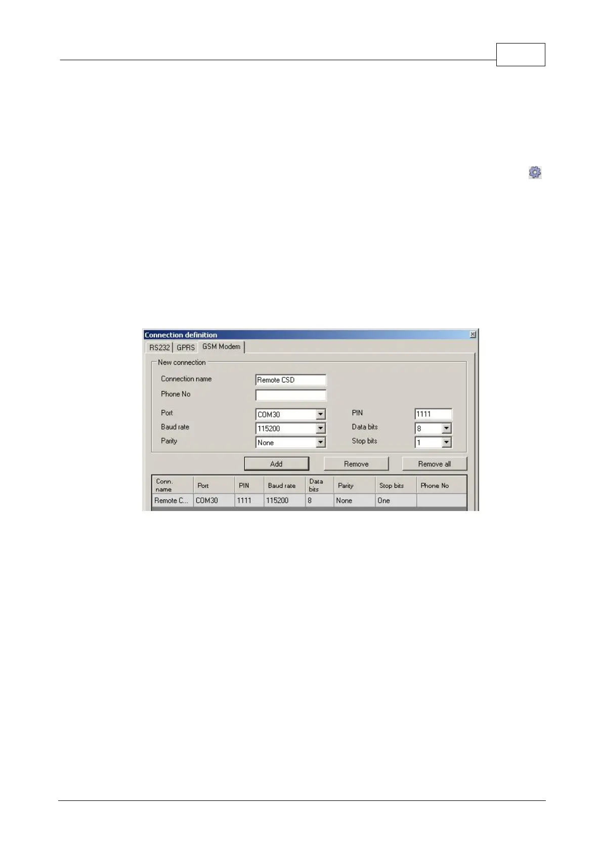 icon on fast access bar) and click on GSM Modem tab to carry out configuration of this