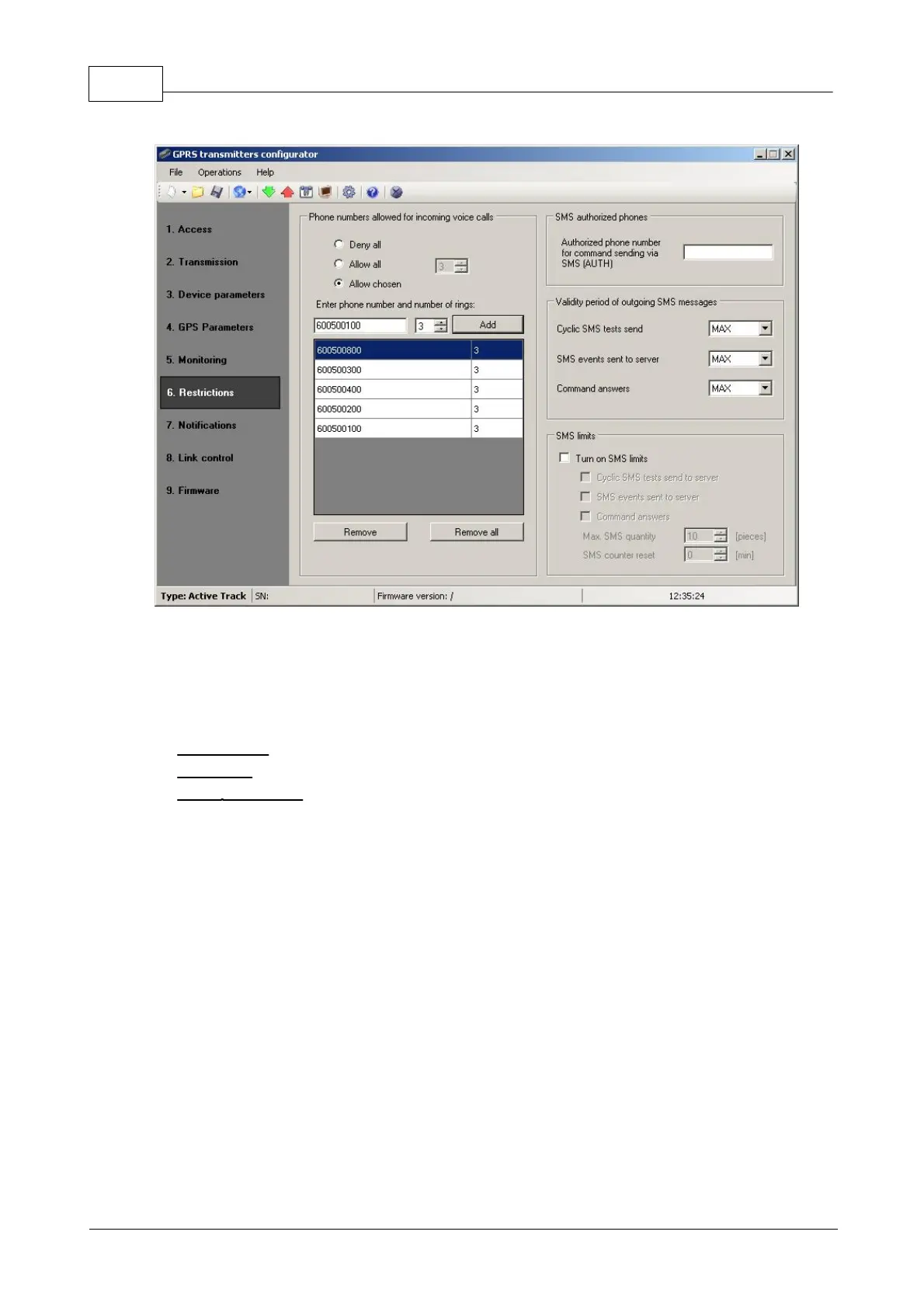 the list. It is possible to put only a fragment of the number on the list, e.g. 1234.