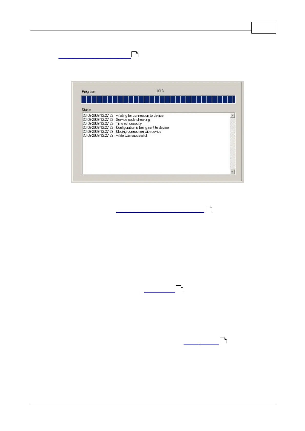 e) Save settings into memory of device. Saving course is displayed in special