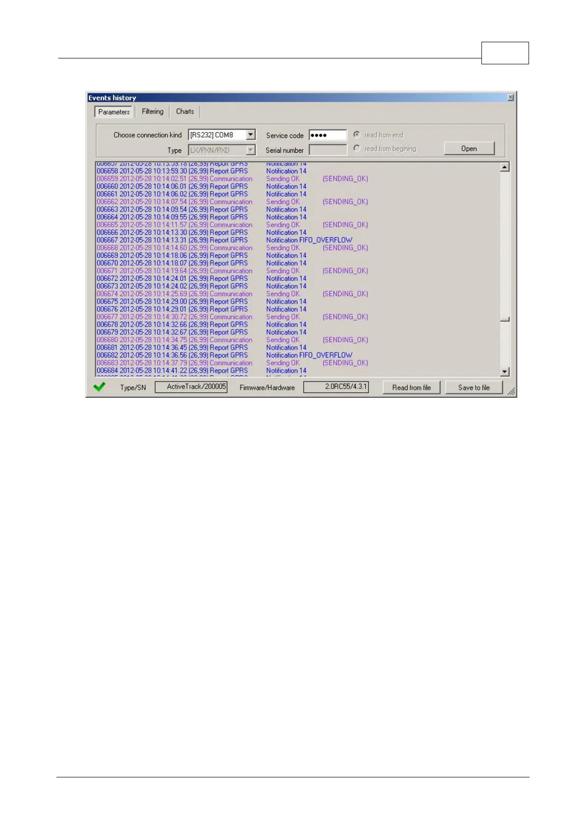 events data will be downloaded from Active Track memory. After properly reading