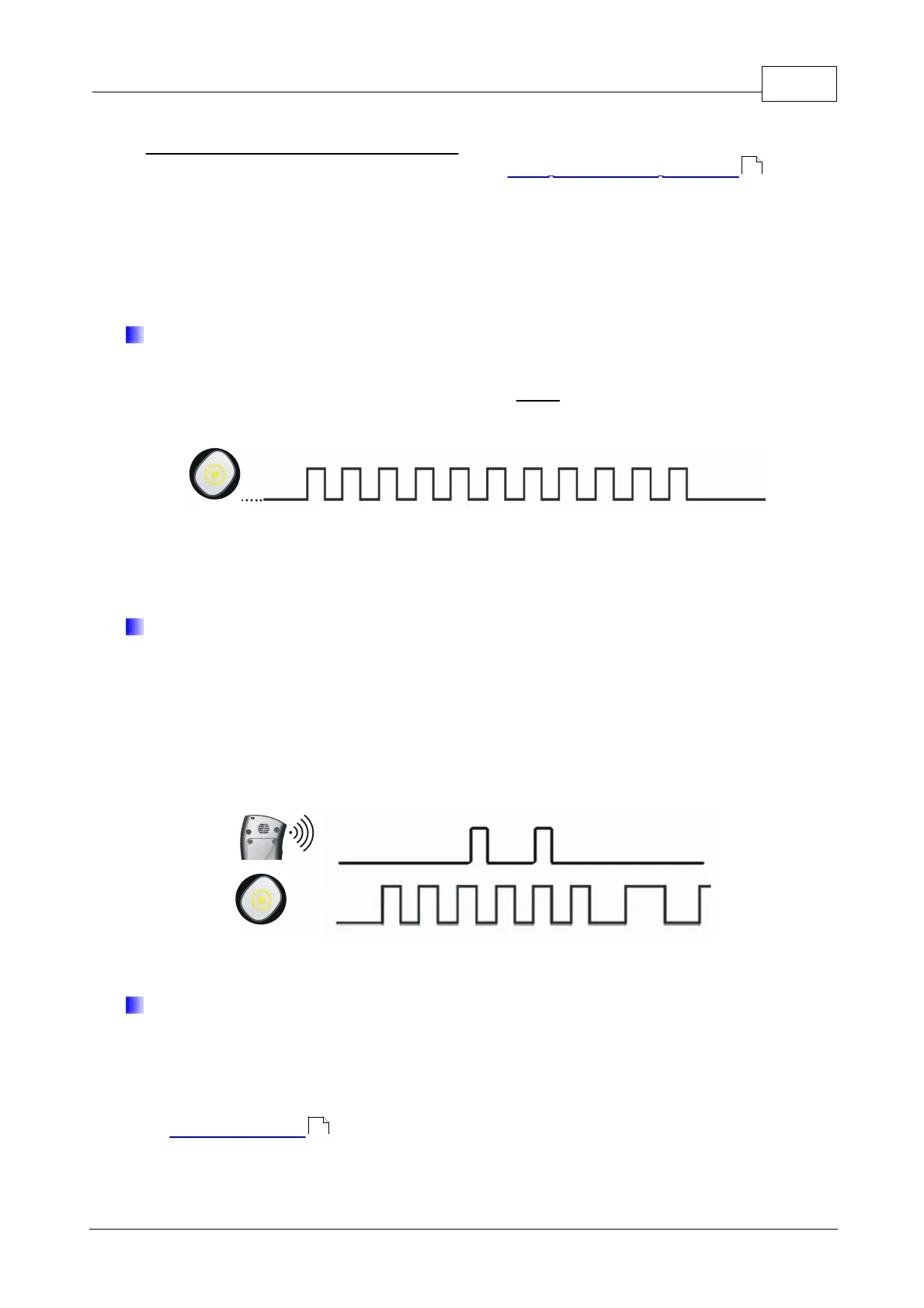2-3 seconds acoustic signal is generated. Holding down the button will generate next