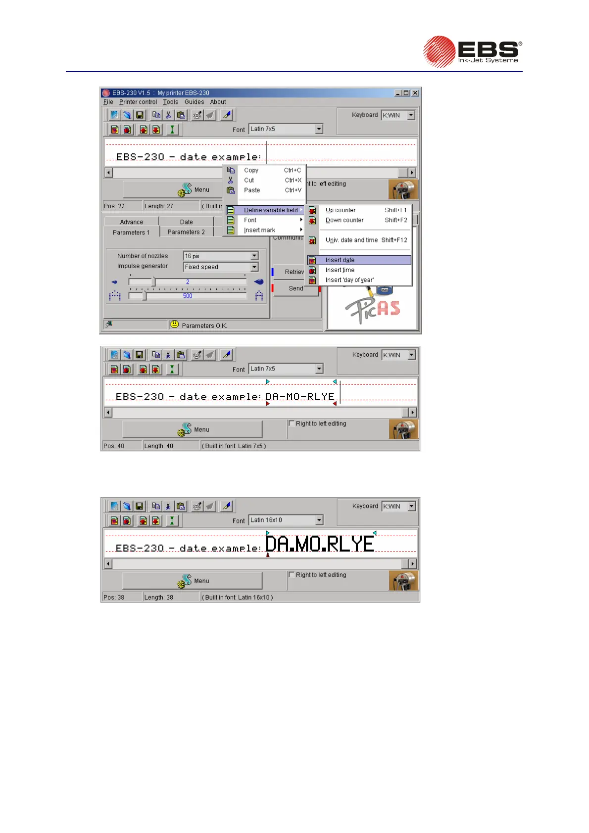 Various elements of the current date and time can be printed on every object with the use of the