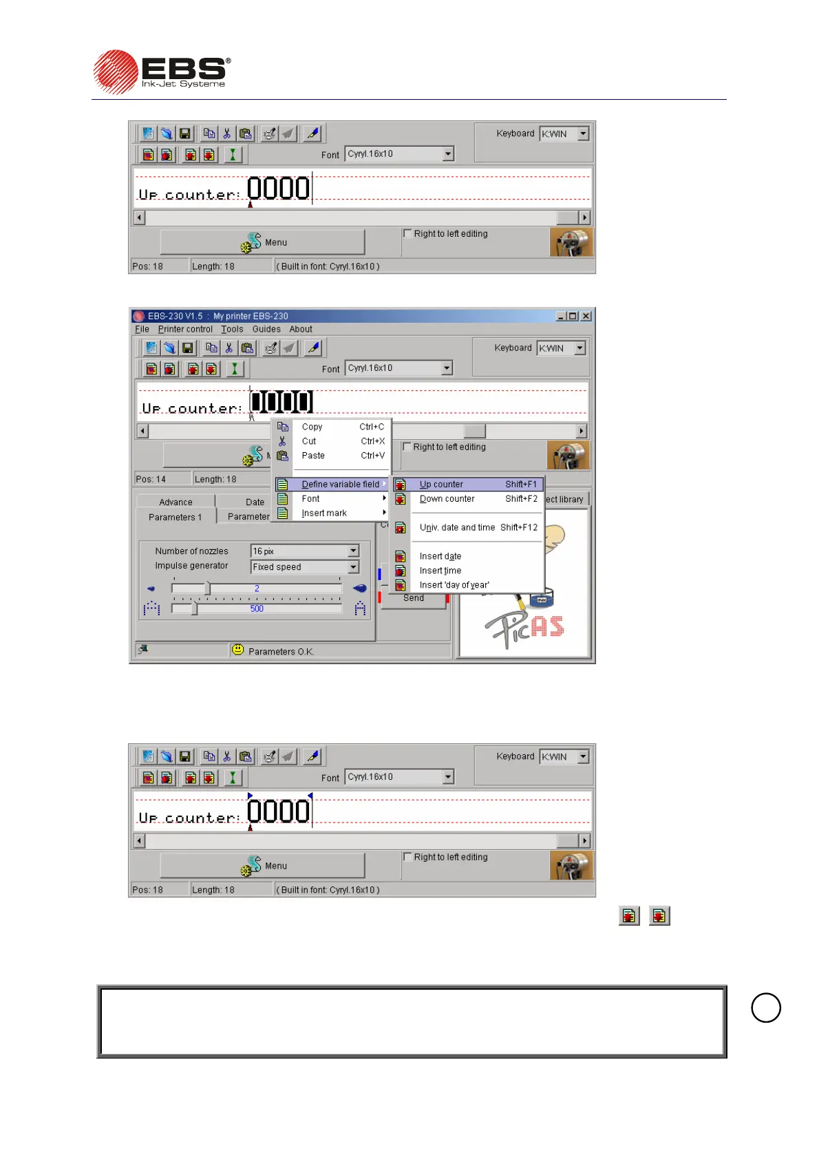 Define variable field in the menu displayed. Then select Up counter