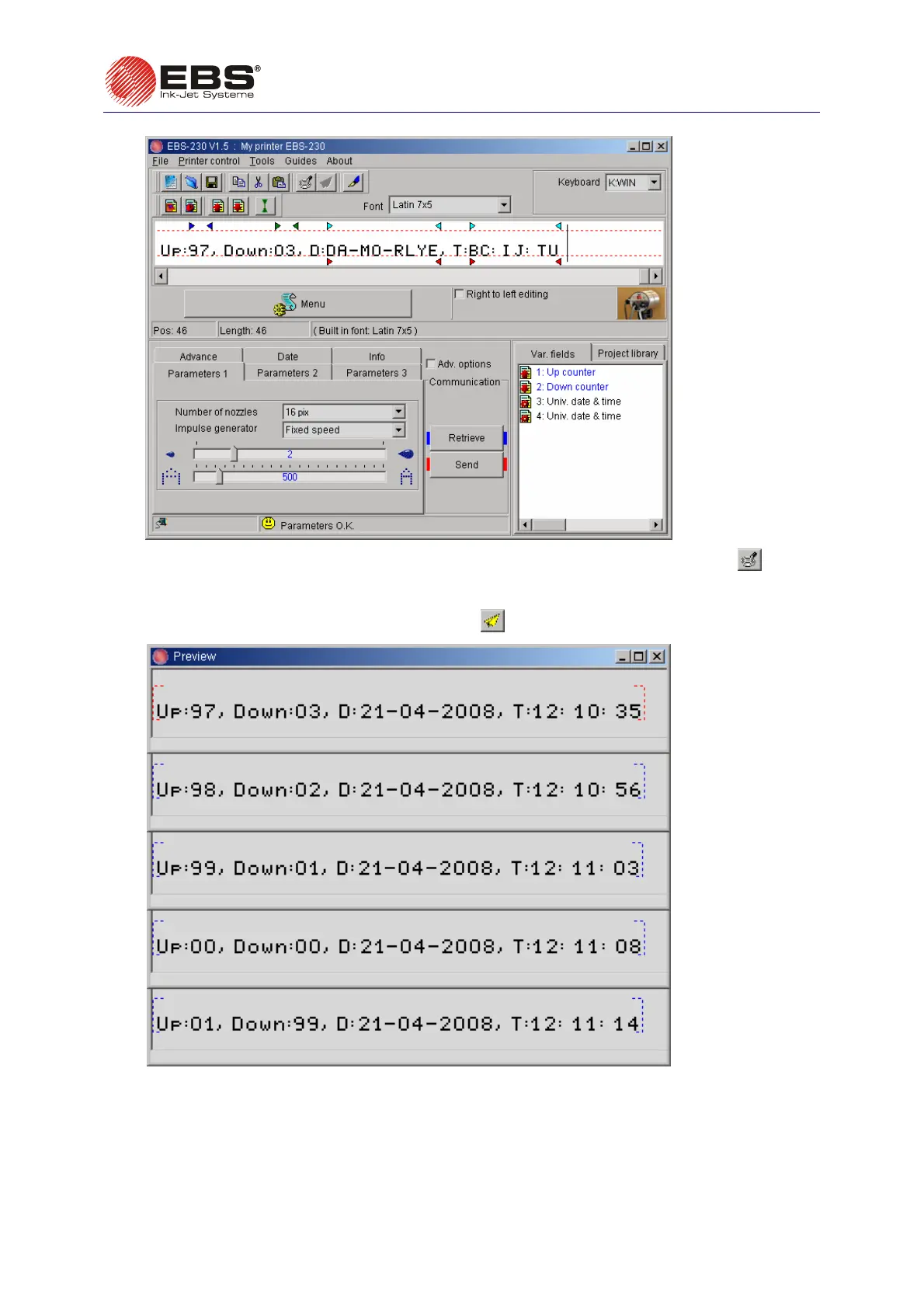 3. Check the operation of the variable fields with the print-preview function by clicking the