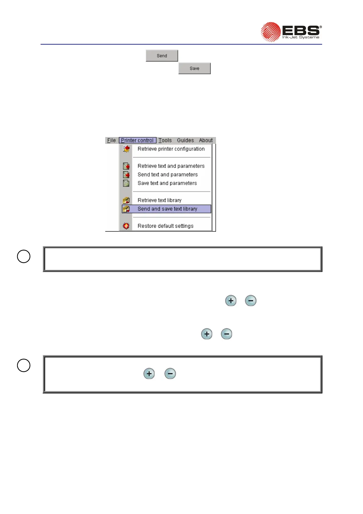 NOTE: The command Send and save text library erases all text files contained in the non-