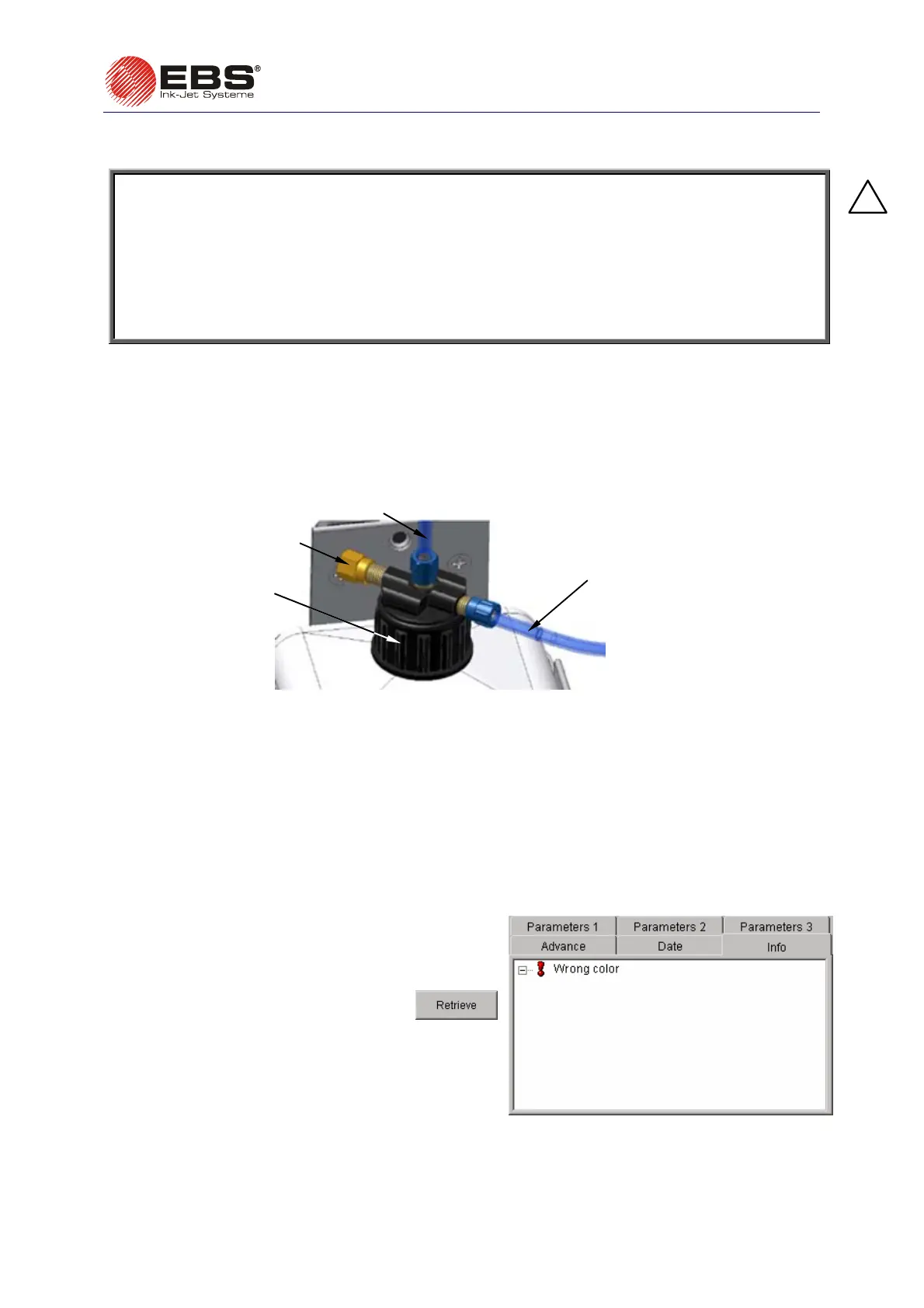 b). Open the drain valve which is next to the ink bottle cap. Therefore the ink pressure drops to zero.