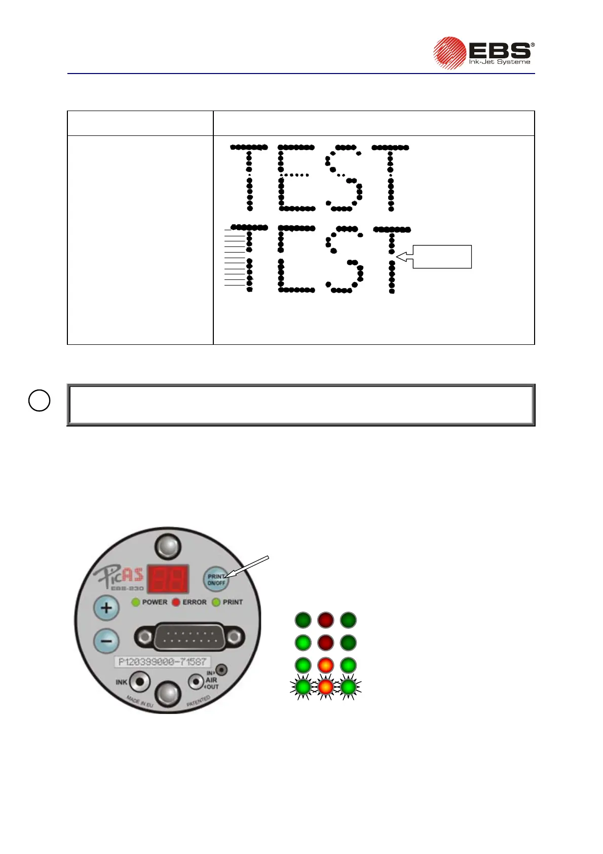 hold the button down until three diodes: POWER, ERROR, PRINT start emitting light