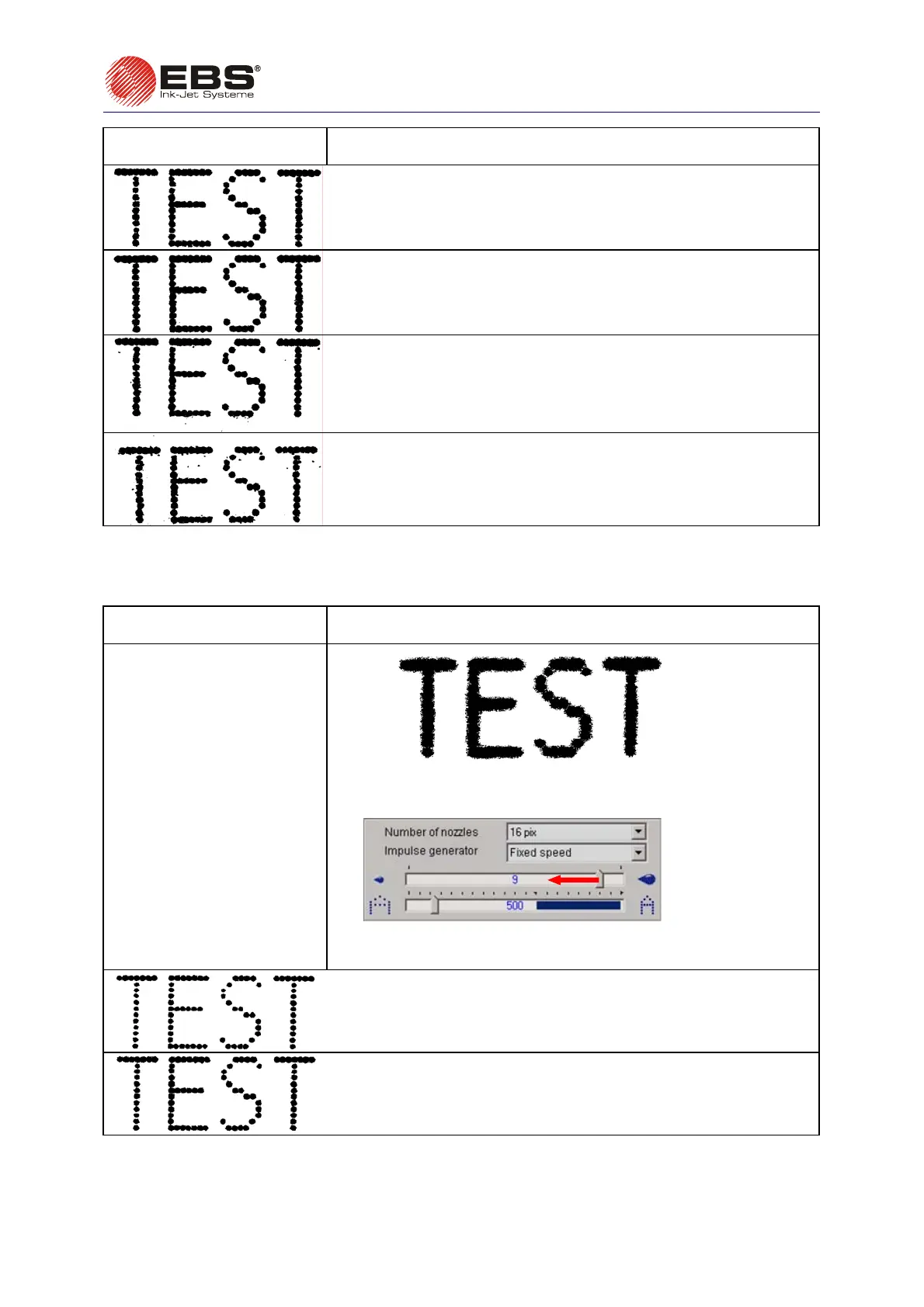 Figures below show the print of a text for the rated pressure of ink