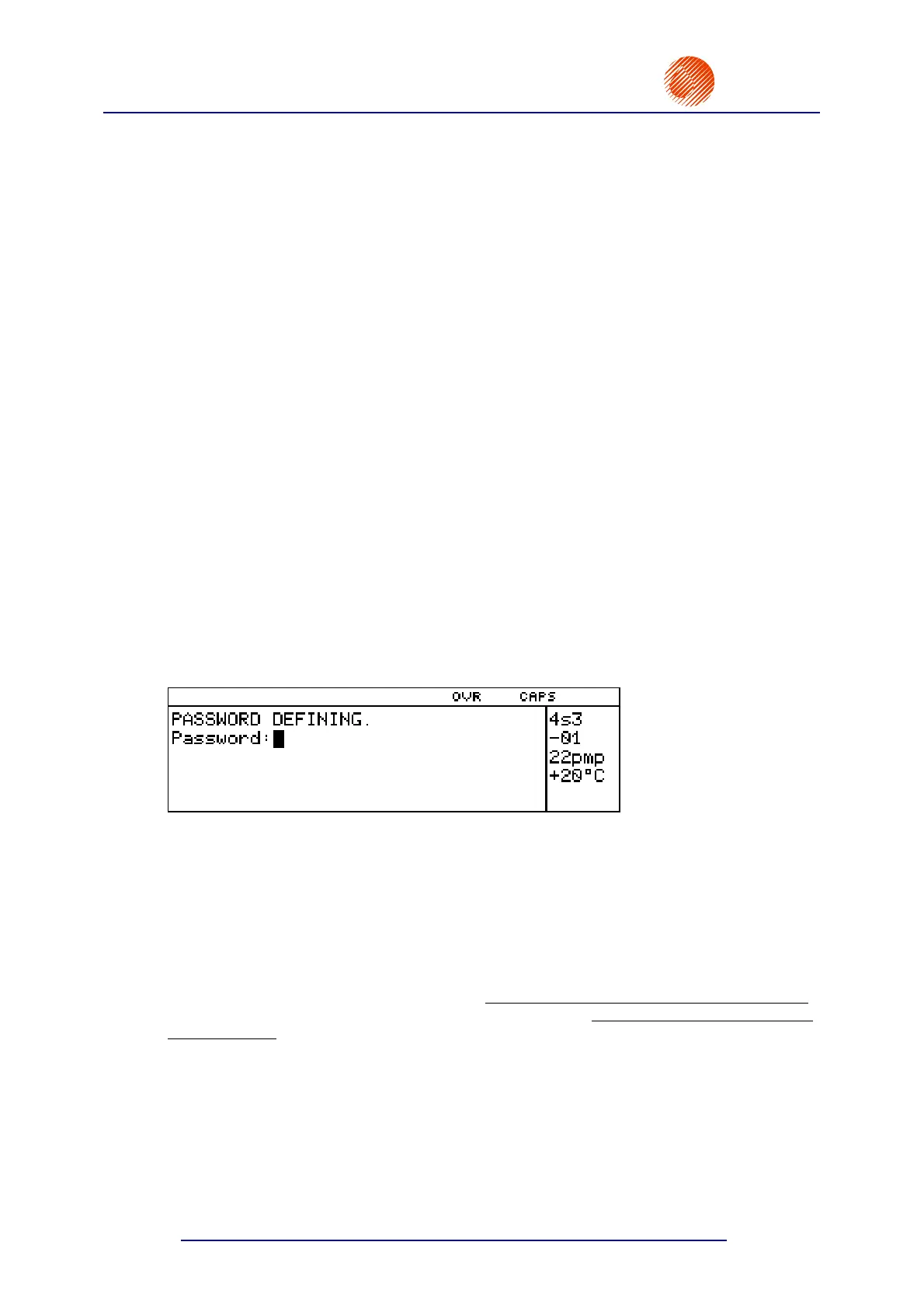 The request to type in a user password is displayed. Enter from 1 up to 8 characters and