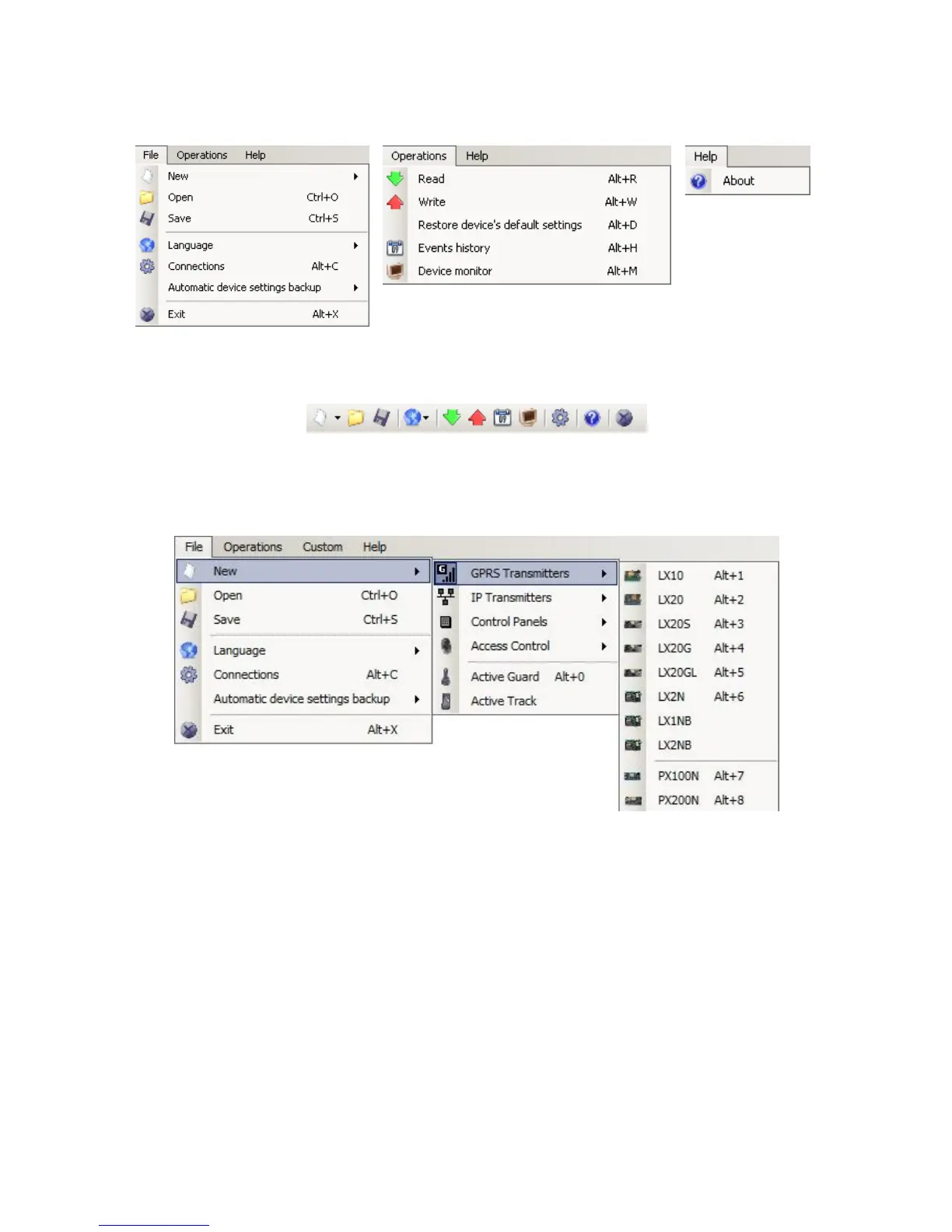 Main menu is available as icons on fast access bar: