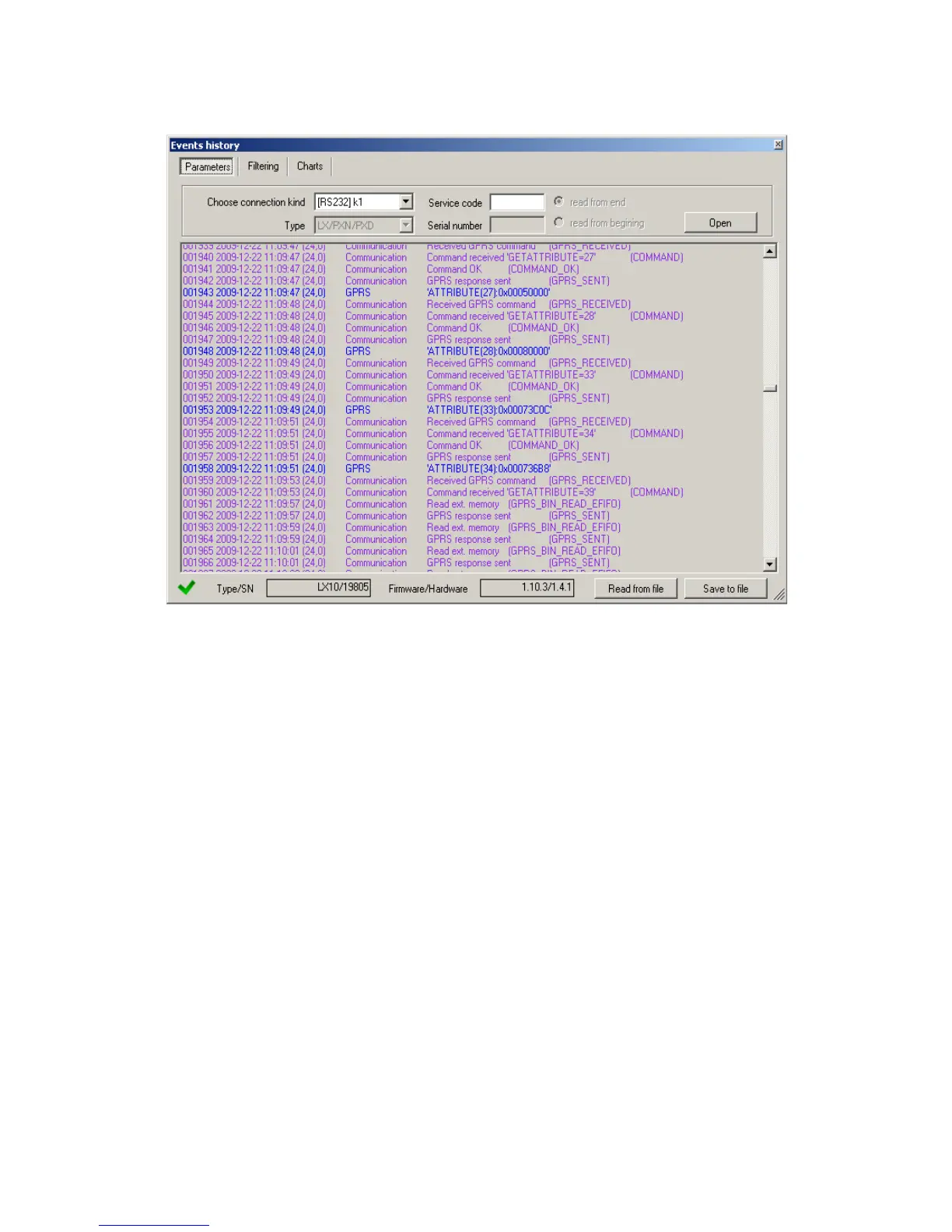 Service code and clicking “Open” button events data will be downloaded from EPX400