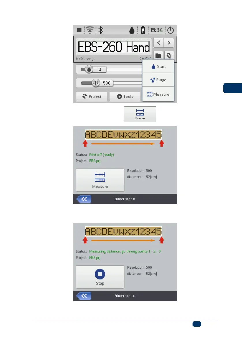 5. Move the printer to the place where the print is to end (lower roll 3 must have