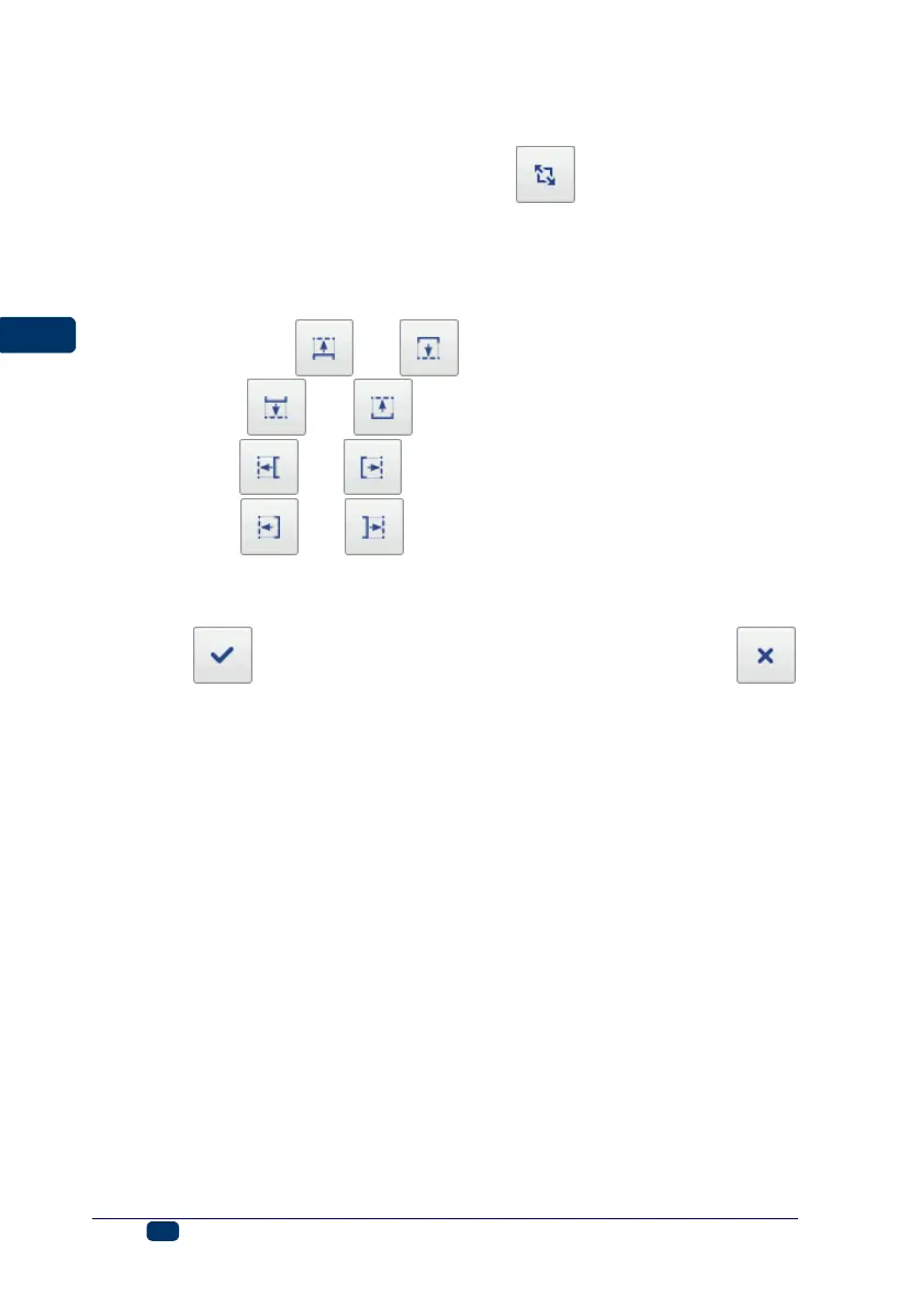 Touch the button in order to confirm the change in size or the