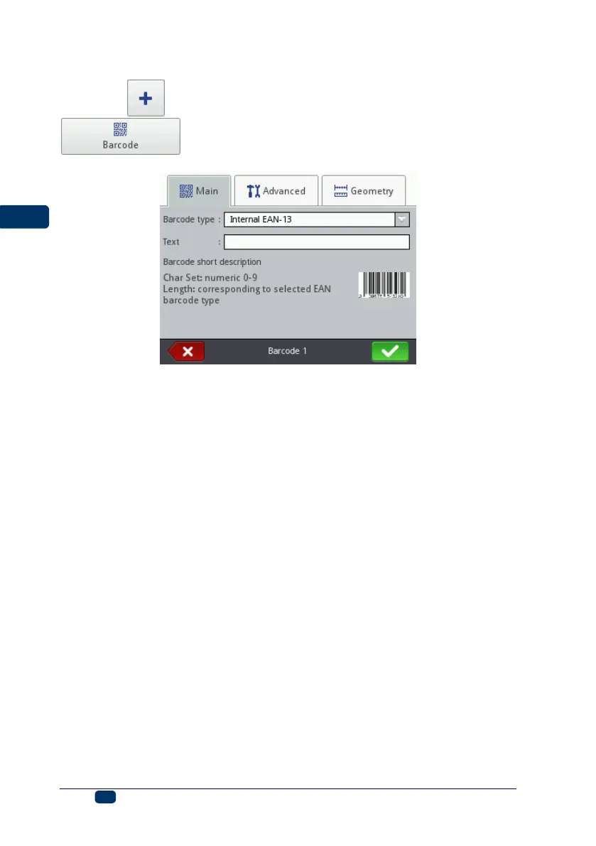 In the Main sheet tab, choose Barcode type and in the Text field, type in