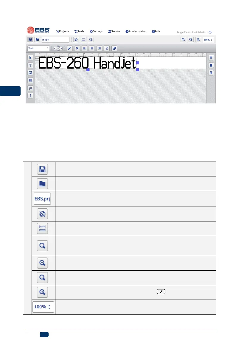 The edit area height is adjusted to the type of print head to be used and fits a