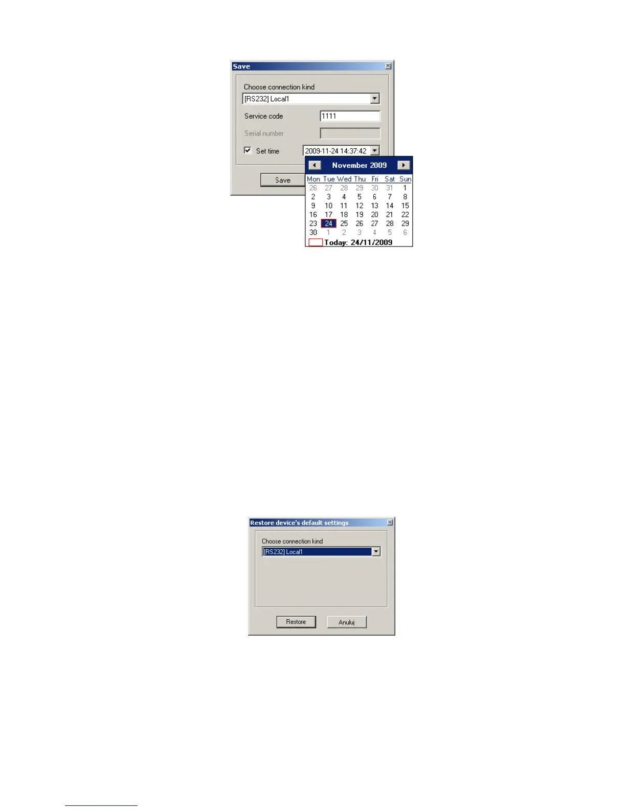 „Events history” provides information about last events stored in LX20B device memory. See chapter