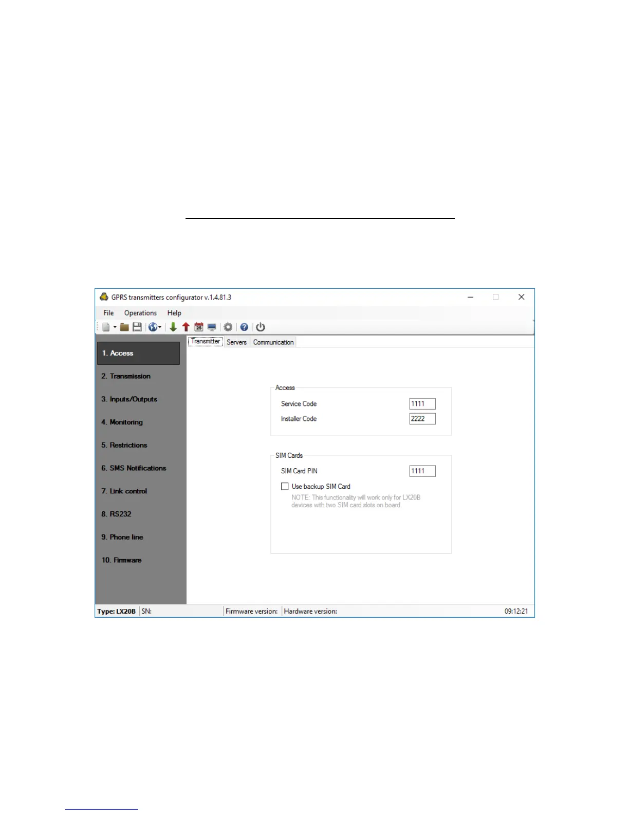 NOTE: Presented appearances of tabs "Transmitter", "Servers" and