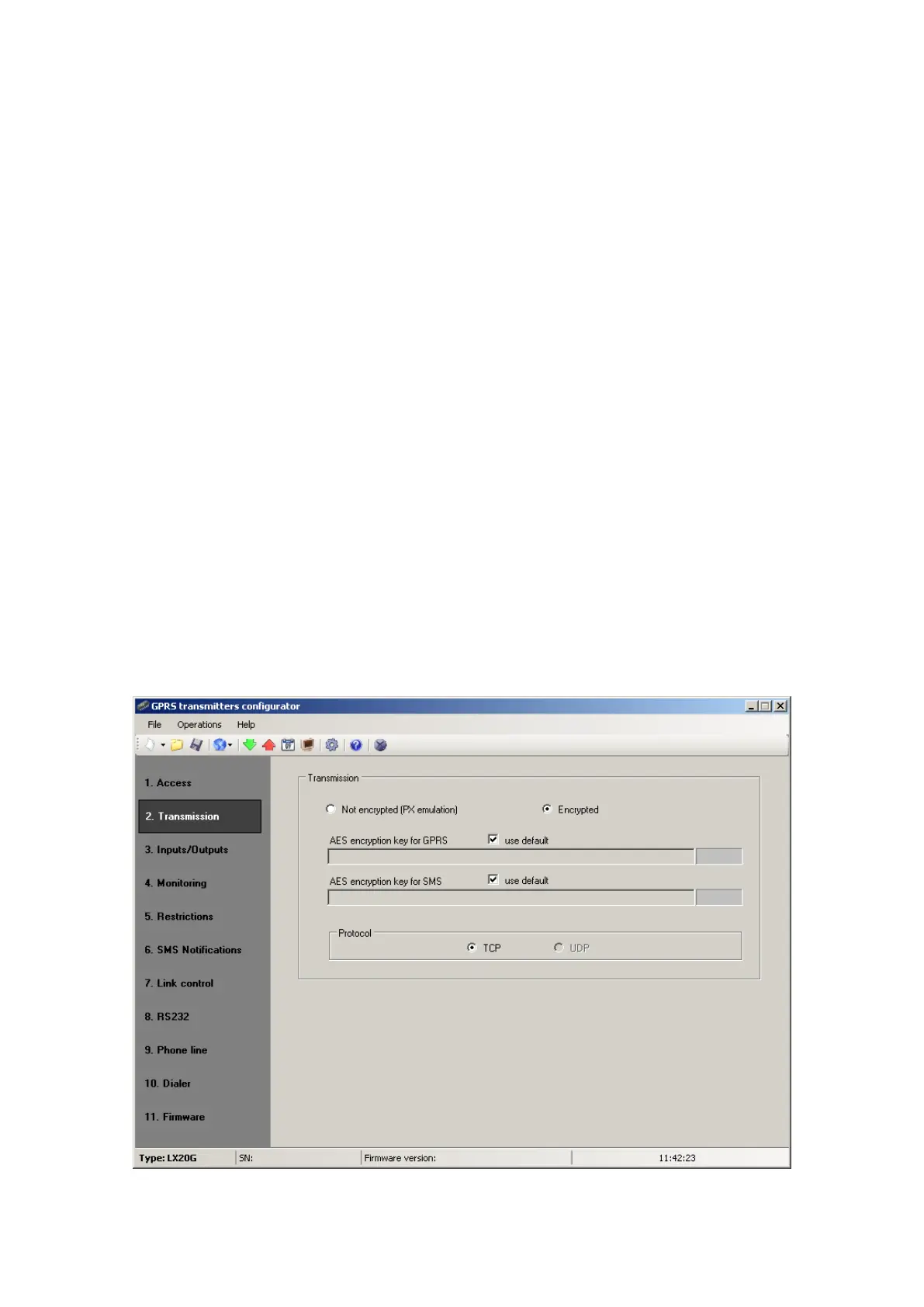 unauthorized groups of parameters in “GPRS transmitter configurator” causes error