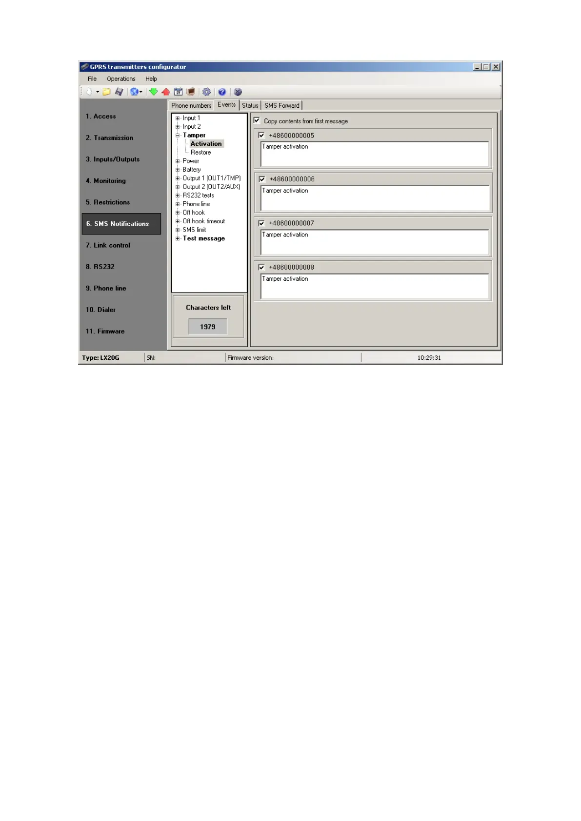 enable the cyclic tests provide up to 5 phone numbers in “SMS Notifications” tab.
