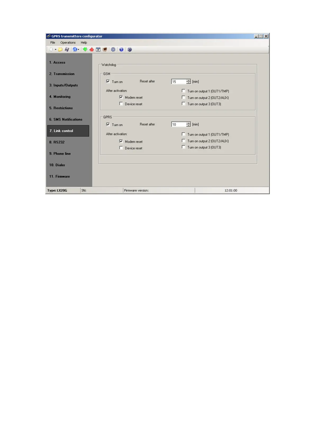 Define time limit after which transmitter shall reconnect to network. Enter time